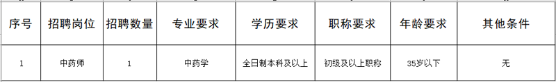 根据医院工作需要,现面向社会公开招聘中药师1人,具体要求公告如下:
